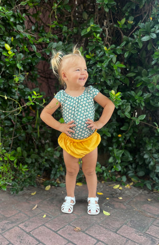 Maggie Cap Sleeve Leotard | Bailey's Blossoms | Green with Daisy Floral- FINAL SALE